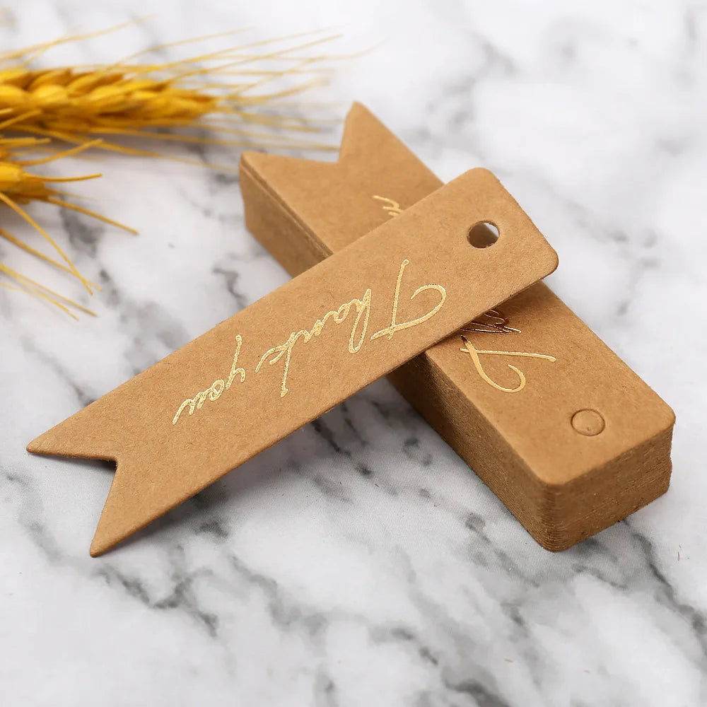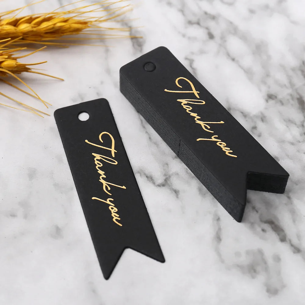 Gift Tags Thank You Cards 50pcs 7x2cm White Kraft Black Red Paper Labels Wedding Birthday Christmas Party Packaging Supplies