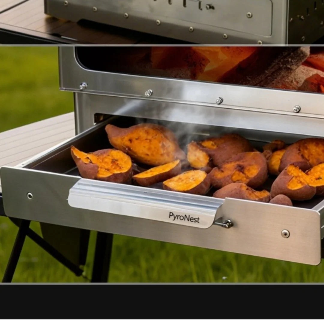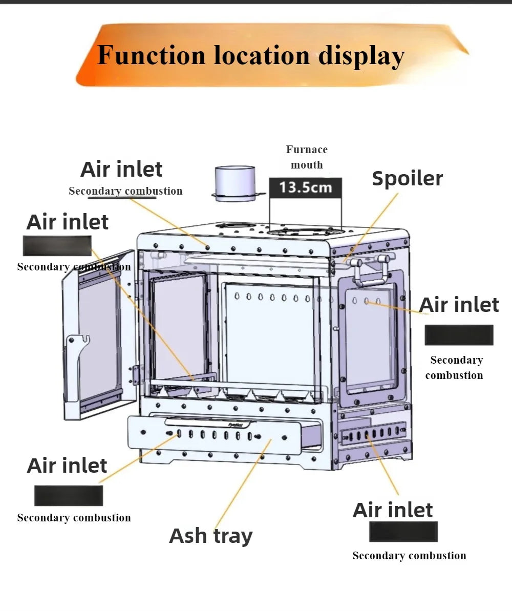 Portable Wood Stove 430 Stainless Triple-Sided Fire View Camping Tent Stove BBQ Grill Oven Outdoor Heater Thermometer SmiloDon
